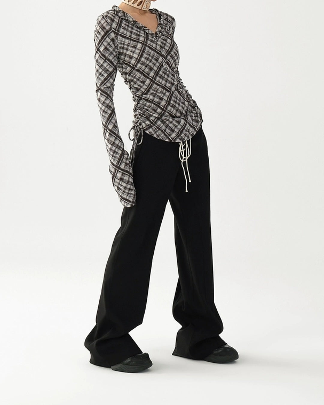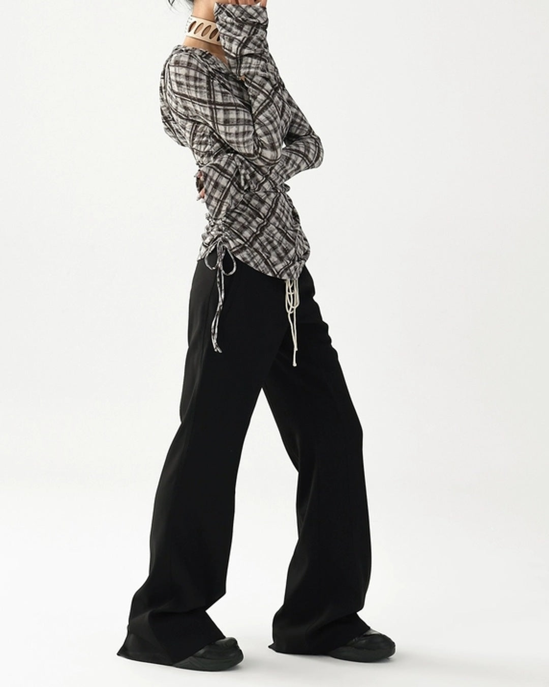 (cm)※1~3cm程度の誤差がある場合がございます。MODEL 162cm 40kg Sサイズ着用【COLOR】ブラック/ブラウン【FABRIC】ポリエステル95%スパンデックス5%※ご注文の前に必ずショッピングガイドをご確認ください。